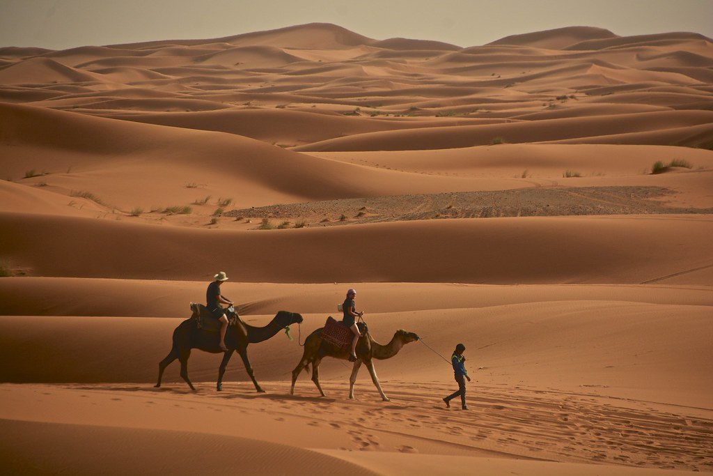 • Camel trekking and sandboarding in the Sahara Desert